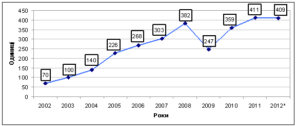 Рис. 1 Динаміка кількості франчайзерів в Україні [1]