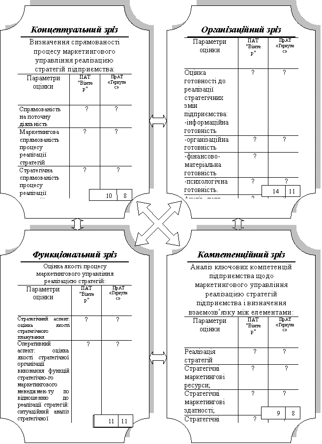 зріз – 10 балів (ПАТ «Вінтер») і 8 балів (ПрАТ «Геркулес»); організаційний – 14