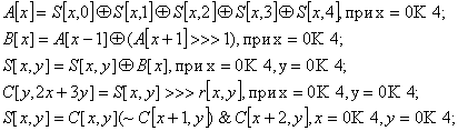 и B[] – временные массивы, содержащие 5 64-битный слов.