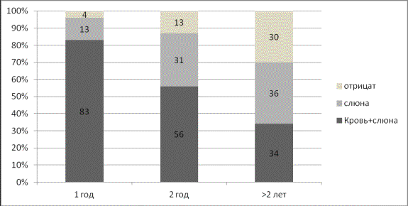 до 1 года, 54 ребенка - от 1 года до 2 лет и 50 детей – более 2-х лет. ДНК