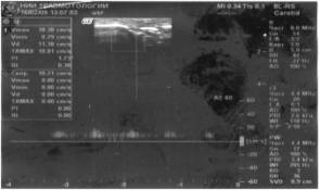 скорости, индексы периферического сопротивления (RI,PI), а также изучали структуру