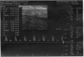 энергетического допплера. Через 2 недели после операции, ЧКДО аппаратом