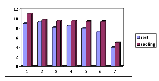 gradient of temperature at rest and cooling, (the difference between axillary and wrist temperature), shows that the