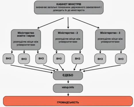 до університетів; університети отриману інформацію передають в Єдину державну