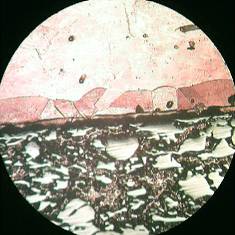 по границе между никелем и сталью наблюдаются расслоения и множественные