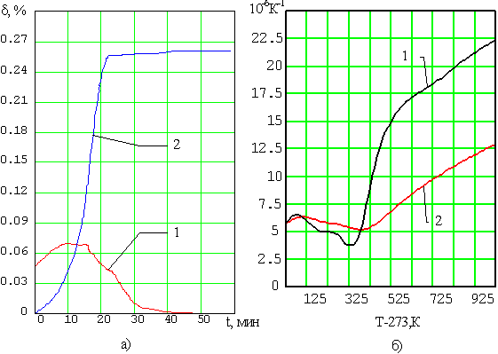 б) ТКЛР материала стягивающих стоек термокомпрессионного устройства в