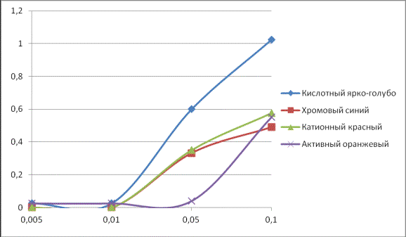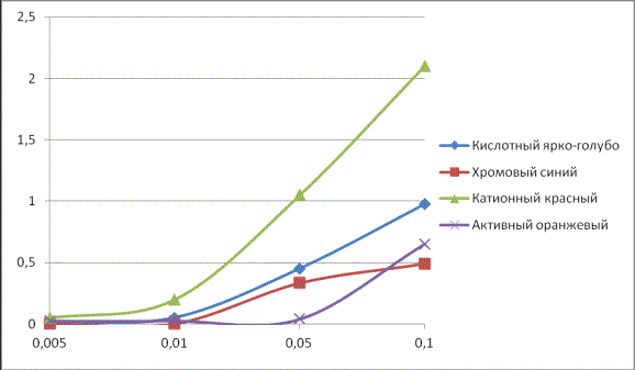 активного оранжевого с концентрацией 0,001 г/л.