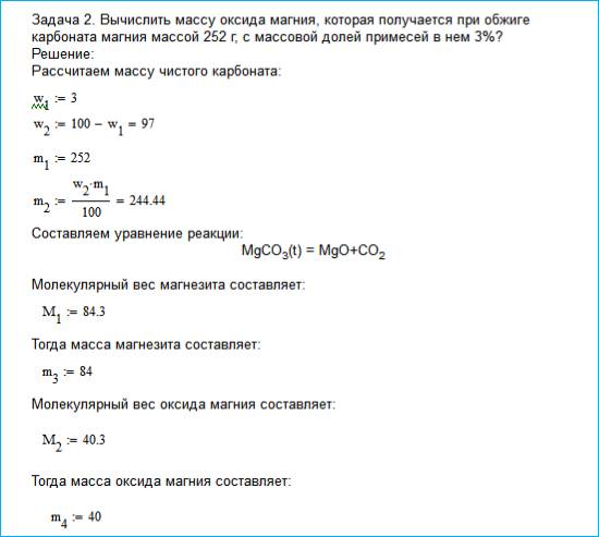 обжиге карбоната магния, определение массовой доли примесей, содержащихся в