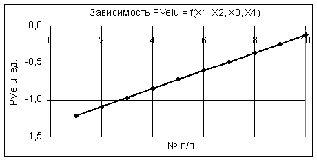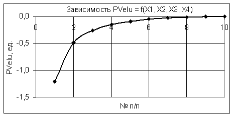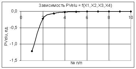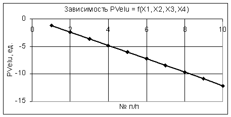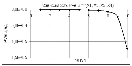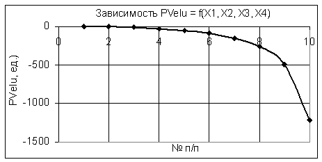 Рис. 2. Изменение PVelu при Х1 = 1…10, Х2 = Х3