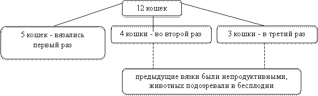 животными наблюдали в течении года, при планомерной вязке. Ни одно животное из
