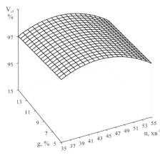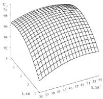 визначали за відомими методиками [2]. В якості факторів було обрано частоту обертання n робочого органу змішувача (діапазон – 35…55 хв-1),