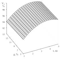 (1…5 хв) та відсотковий вміст мінімального компоненту суміші g (5…15 %). Дослідження проводили із застосуванням методу