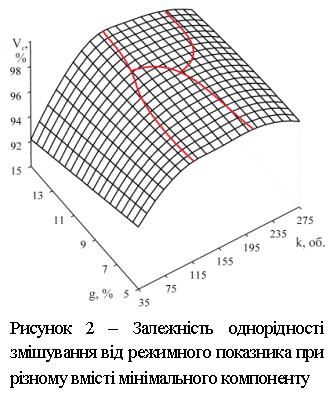 змішування при фіксованих оптимальних значеннях представлено на рис. 1.