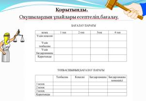 қорытындылап, ең соңында бағалау жүргізу керек.