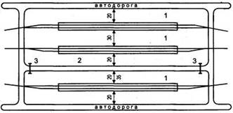 1 - эстакада; 2 - пожарный проезд; 3 - шлагбаум