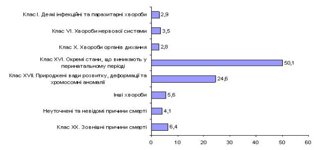 Україні основними причинами смерті дітей віком до 1 року за період від січня по