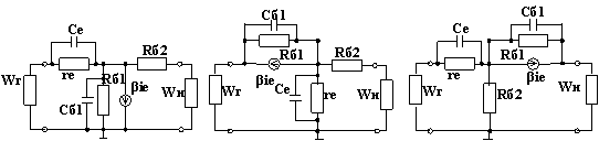 включенной с общей первой базой (а), с общим эмиттером (б), с общей второй