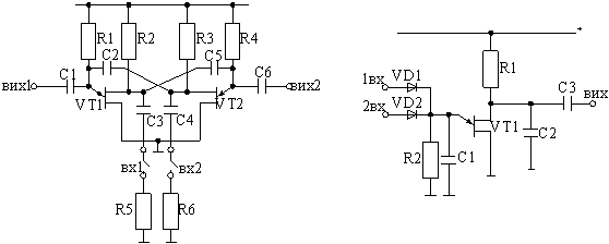 Триггер реализован на первой VT1 и второй VT2 ОТ-структурах представляет собой двухкаскадный прибор, в котором осуществляется резистивная связь выхода