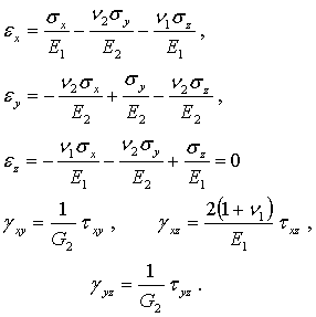 где {σ} = {σx, σy, τxy}, [D] = [dij], {ε} = {εx, εy, yxy}, (i,j = 1,3) –матрица упругости.