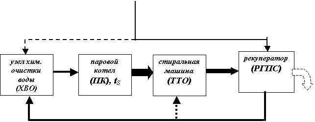 элементами установки являются: паровой котел 1 (ПК), теплоиспользующее технологическое оборудование (стиральная