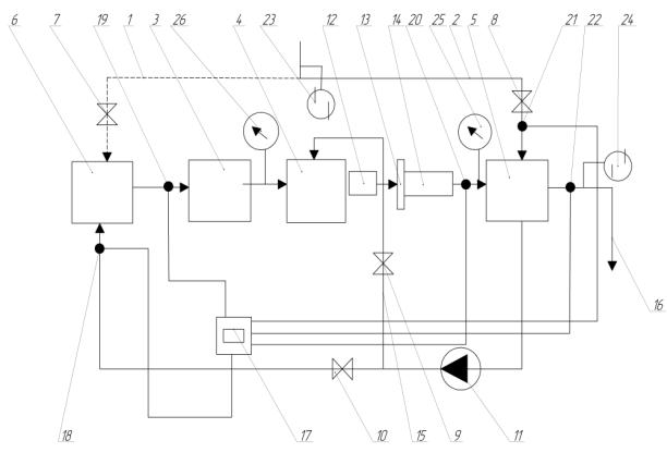 химической очистки воды применяется насос для технической воды 11. Вентили 9 и