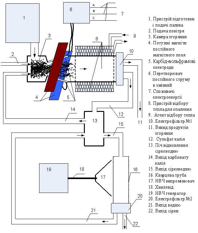 сірководню. Залишки карбонату калію треба направити до МГД ‑ генератора