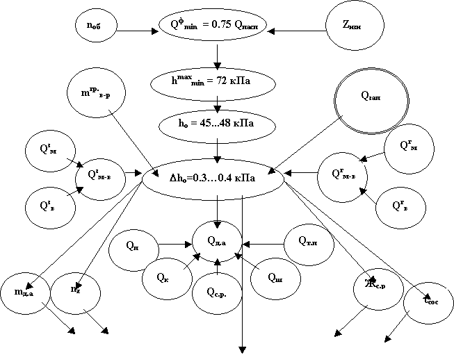 подачи насоса; В.пр – вакуумпровод; QГ – потери подачи насоса из-за негерметичности систем; QЗ – потери