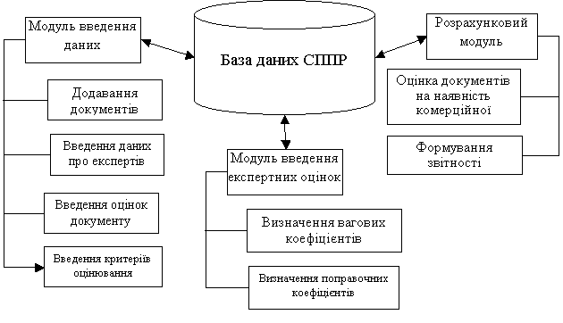 введення даних, розрахунковий модуль та модуль введення експертних оцінок, які