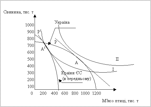 для України, точка А' – для країн ЄС. Через ці точки проходять лінії внутрішніх
