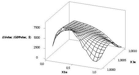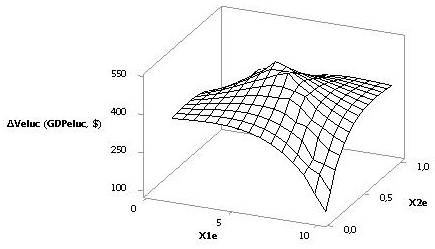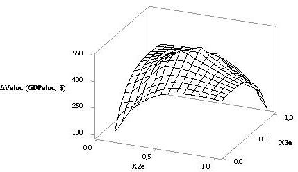 На следующем рис. 4 показана также 3D зависимость, но при Х1е = Х3е = 1…0,1 и Х2е = 10.