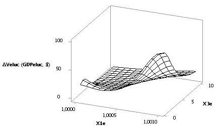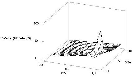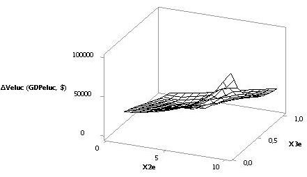 как изменяются значения DVeluc, когда параметры будут следующие: Х1е = Х2е = 1…0,1, Х3е = 10.