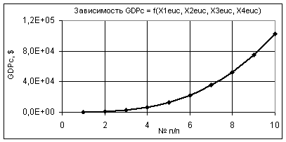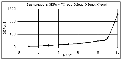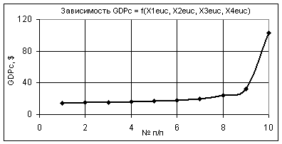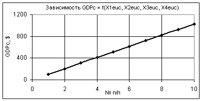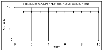 Х2еuc = 1…10, Х3еuc = 1 и Х4еuc = 0,9. В этом случае значения GDPc увеличиваются