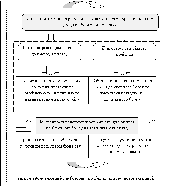 ефективної боргової політики уряду у взаємозв’язку зі зваженою монетарною