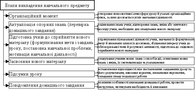 викладання предмета повинно будуватися за схемою, поданою на рис. 1.