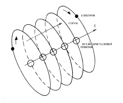 забезпечує зміну напрямку руху при обертанні електронів у атомів поляризованого