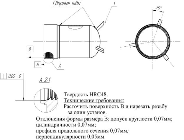 диаметра сварного корпуса и нарезание внутренней упорной резьбы производят,