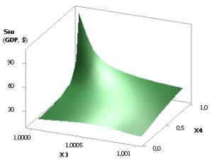 7 demonstrates the dependence of Ssu (GDPsu) at Õ1 = 1, Õ2 = Õ3 = 1…0,1 and Õ4 = 0,1…0,99. As we