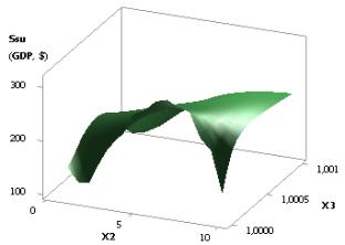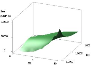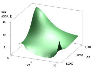 Figure 6. 3D graphic: Ssu (GDPsu) = f(Õ1, Õ3);