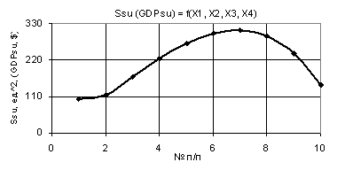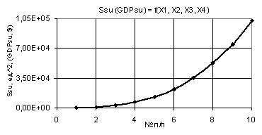 (GDPsu) at Õ1 = Õ2 = 1…10, Õ3 = 1 and Õ4 = 0,99 are rather high, from 102,86 to 102861,38,