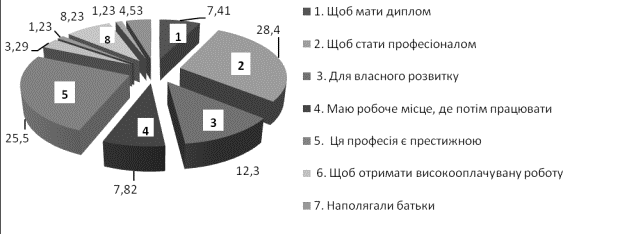 мотивами професійного вибору є бажання стати професіоналом та престиж цієї