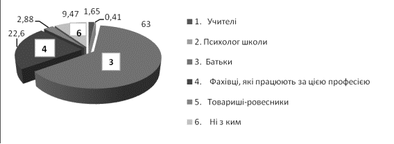 респондентів прислуховувались до порад вчителів та психологів (рис. 2).