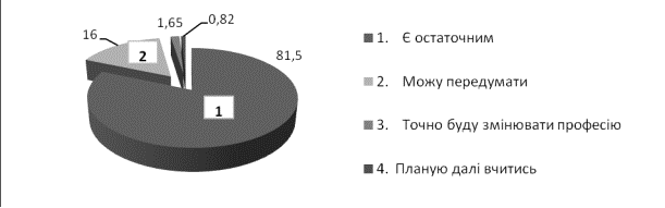 81,5 % опитаних (рис. 3) у правильності свого вибору пояснюється тим, що