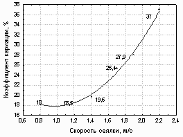 равномерность распределения семян в рядке оценивалась коэффициентом вариации (
