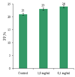 abzymes 1.0 mg/ml had a marked effect on the level of PP (control – 32% vs.