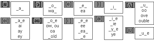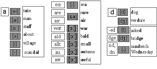 Рис. 4. Приклади фонемо-графемних відповідностей,