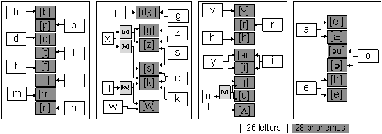 перебіг, оскільки відповідності між літерам та звуками неоднозначні.
