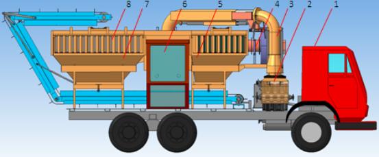 груза в транспортное средство обеспечивается секционным ленточным конвейером (рис. 7, поз. 5, 7), изменяющим