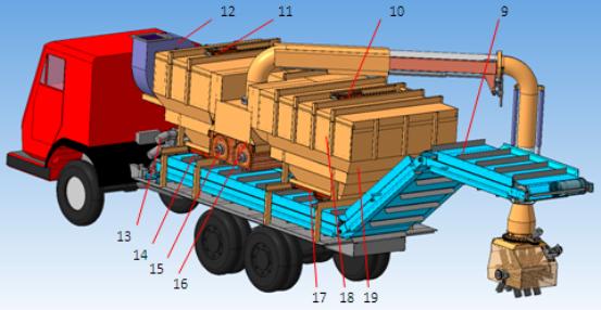 устройство; 16 – приемно-перегрузочный бункер емкости; 18 - откидные панель; 19