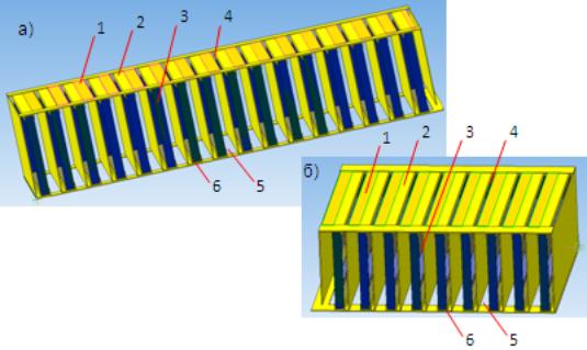 – каркас; 2, 6 – направляющие для установки фильтров, 3 – рамочный фильтр; 4 –