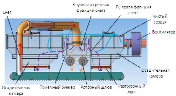 снега через лопатки вентилятора был рассмотрен вариант пневмотранспорта по
